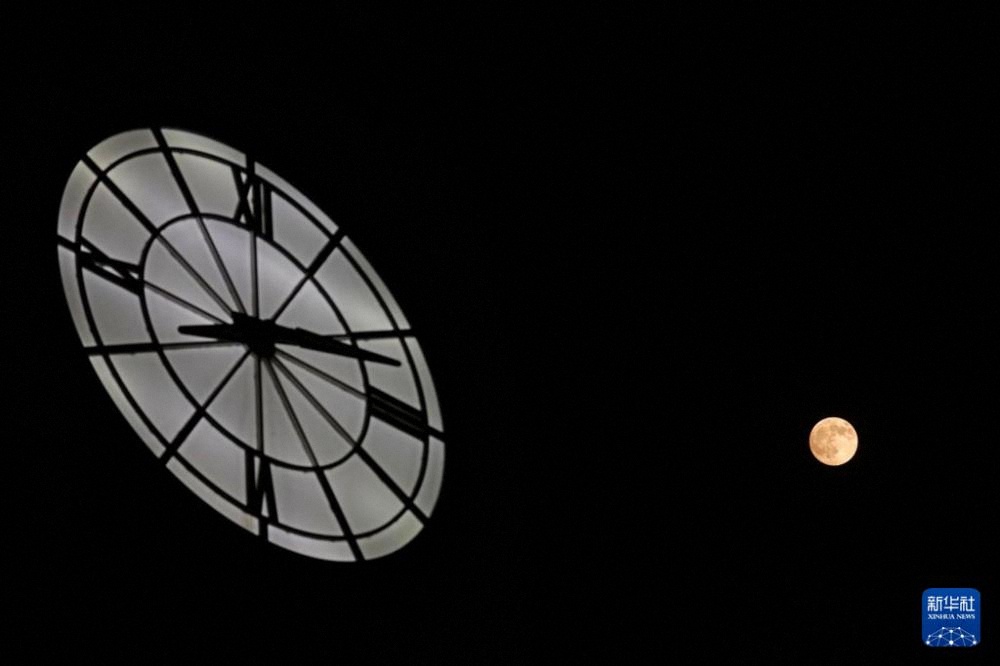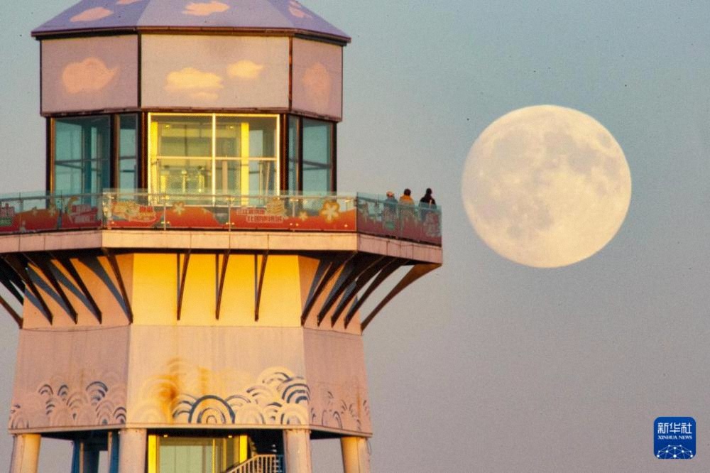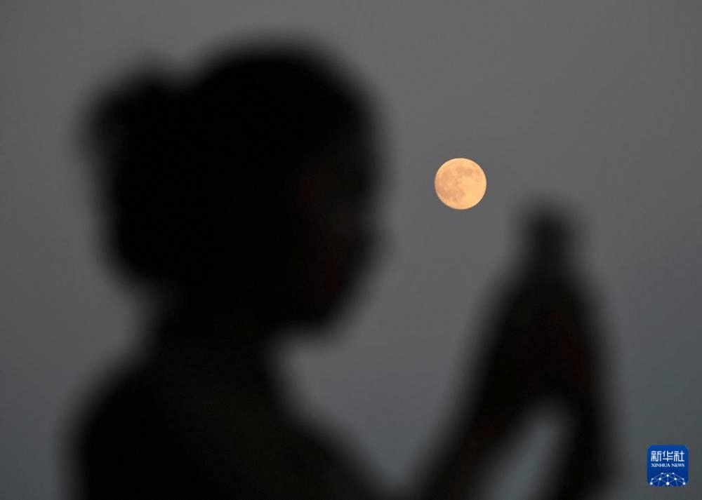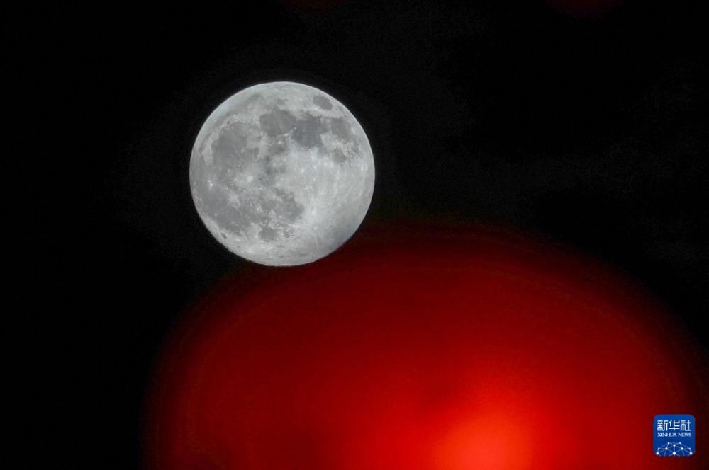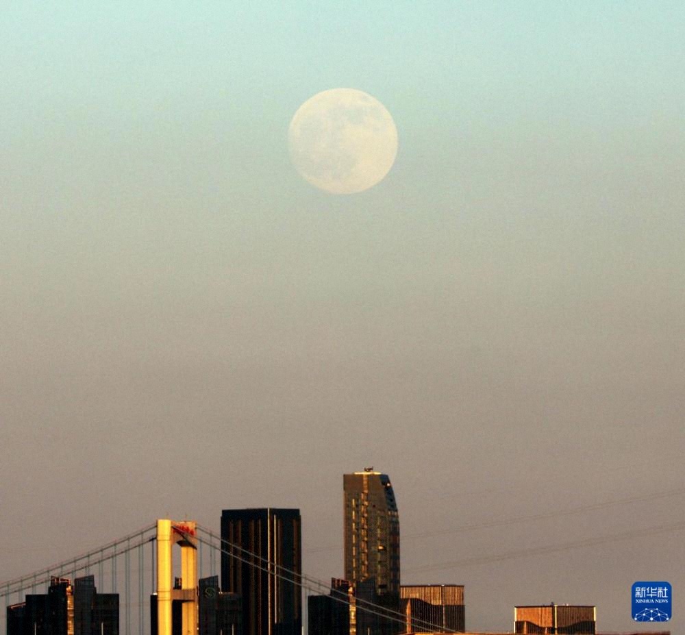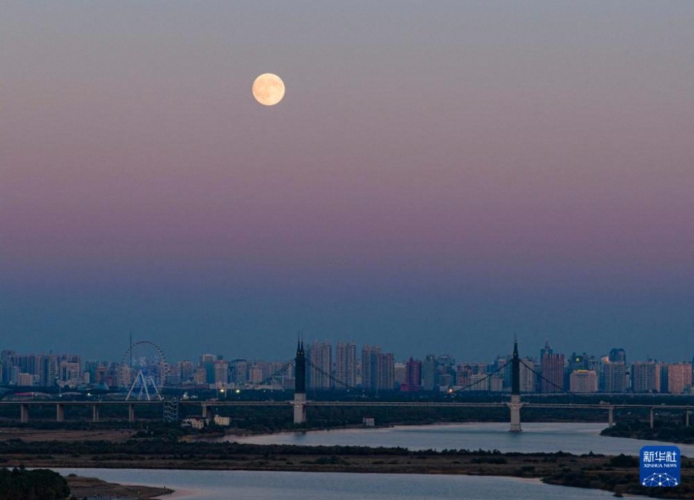 10月6日在黑龙江省哈尔滨市拍摄的“超级月亮”。新华社发(张晏搏摄)