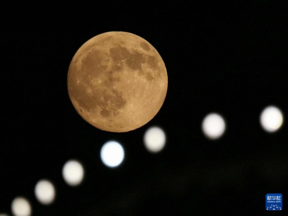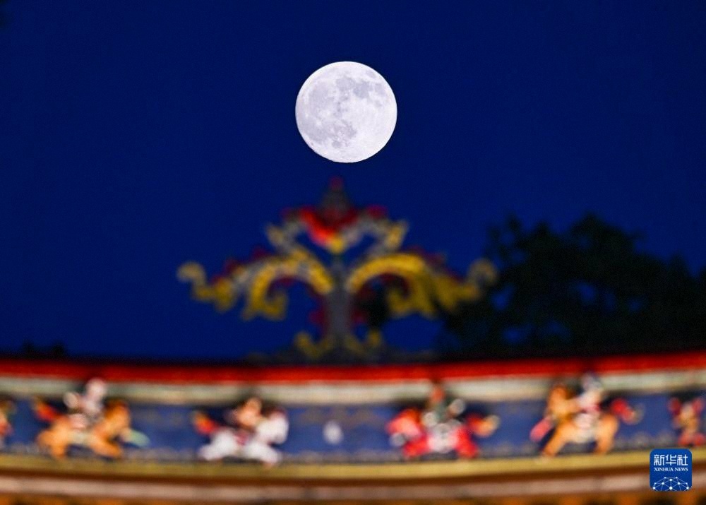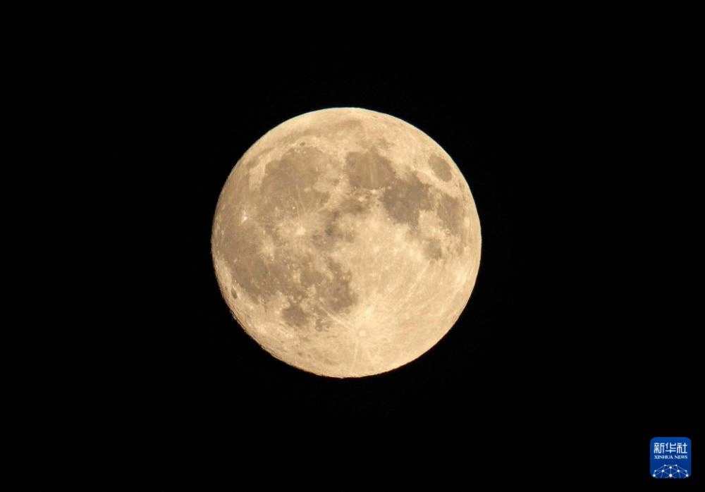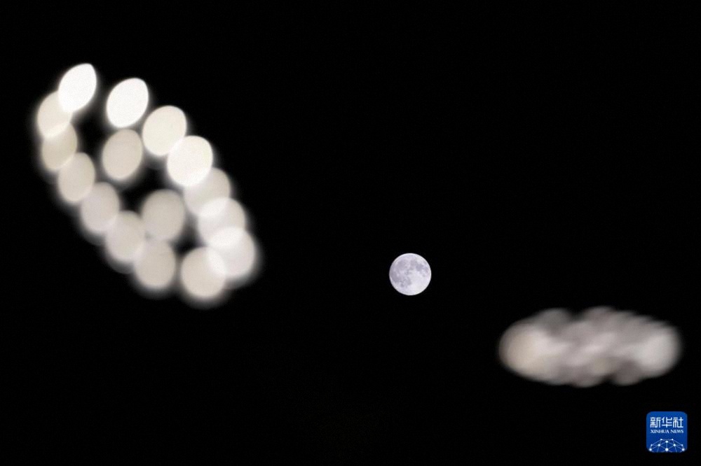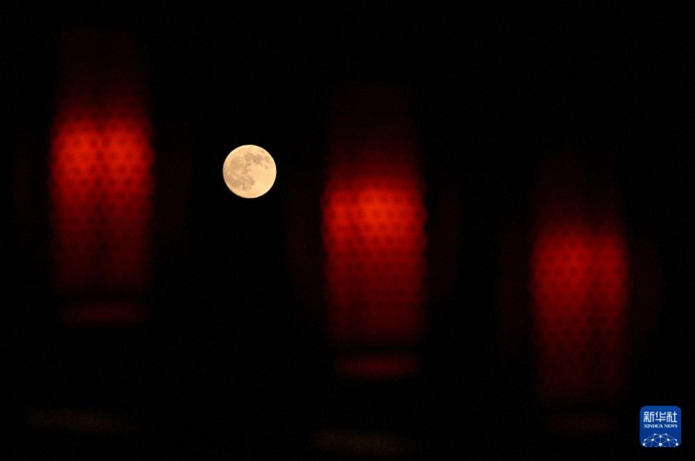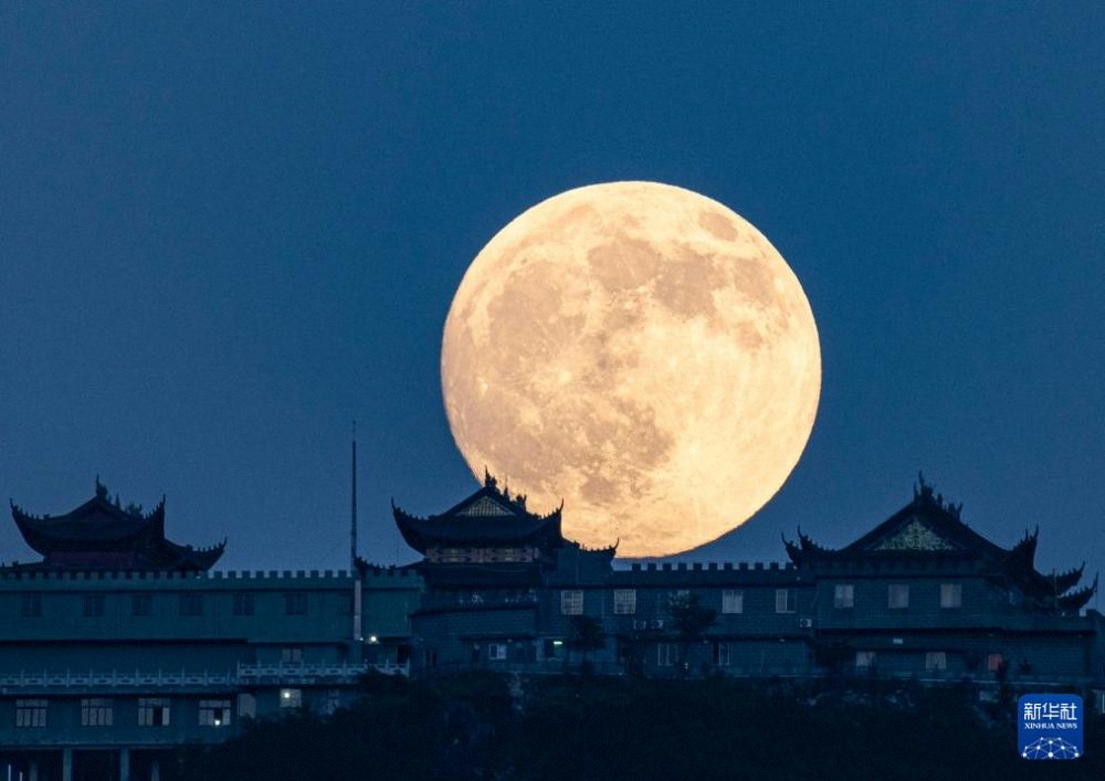 10月6日在贵州省铜仁市玉屏侗族自治县拍摄的圆月。新华社发(胡攀学摄)