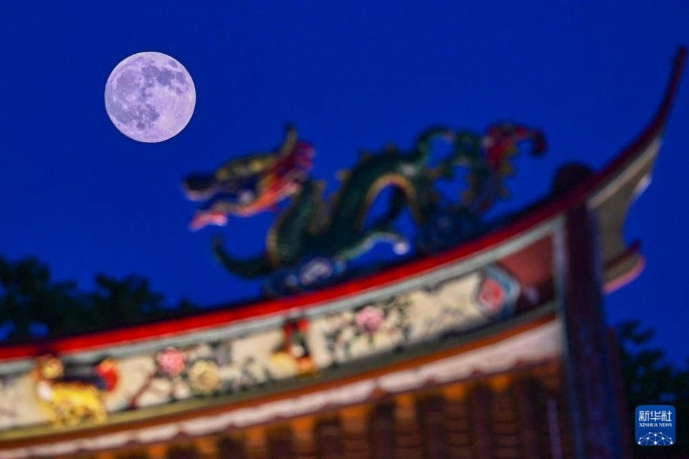 10月6日在浙江省温州市苍南县炎亭镇拍摄的中秋圆月。新华社发(苏巧将摄)