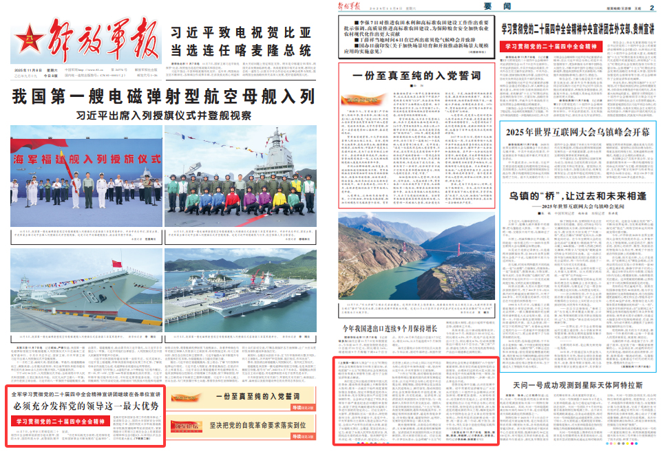 11月7日,全军学习贯彻党的二十届四中全会精神宣讲团分赴火箭军、国防大学、国防科技大学、武警部队展开宣讲。