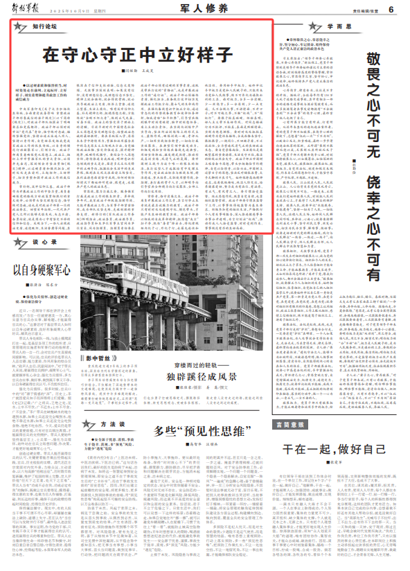 ●以过硬素质和强烈担当,时时处处走在前列,立起标杆、立好样子,切实重塑和提升政治工作的威信威力