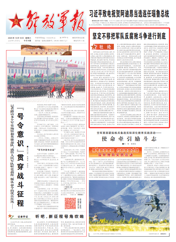 “沉舟侧畔千帆过,病树前头万木春。”人民军队始终是党和人民完全可以信赖的英雄军队。在奋斗建军百年、奋进强军一流的新征程上,全军和武警部队官兵要牢记统帅重托,勇扛时代重任,扎实推进练兵备战和规划任务攻坚,坚决捍卫国家主权、安全、发展利益,以实际行动书写对党和人民的赤胆忠诚。让我们更加紧密地团结在以习近平同志为核心的党中央周围,深刻领悟“两个确立”的决定性意义,增强“四个意识”、坚定“四个自信”、做到“两个维护”,贯彻军委主席负责制,坚定信念、担当使命,踔厉奋发、勇毅前行,把我们党领导的这支英雄军队锻造得更加坚强,为如期实现建军一百年奋斗目标、加快把人民军队建成世界一流军队不懈奋斗。