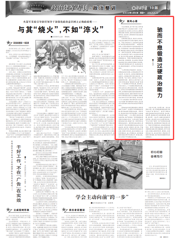 习主席强调,在干部干好工作所需的各种能力中,政治能力是第一位的。政治建军是人民军队立军之本,持续加强政治能力训练,是深化政治整训的重要内容,也是深入贯彻新时代政治建军方略的应有之义。