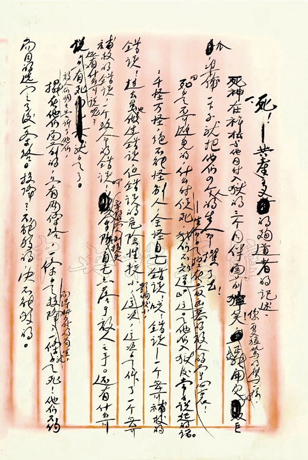 1935年,方志敏同志在狱中作《死!——共产主义的殉道者的记述》(部分)。 中央档案馆藏