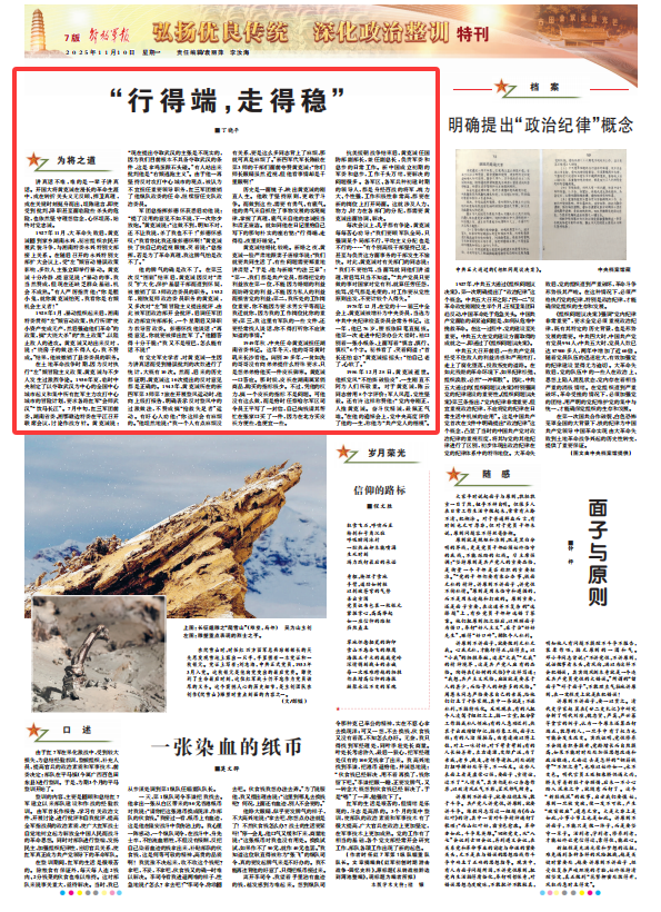 历史是一面镜子,映出黄克诚的刚直人生。他敢于坚持原则,更敢于斗争。而做到这些,需要有勇气、有底气。他的勇气来自抓住了事物发展的客观规律,掌握了真理,底气来自他的忠诚担当和清正廉洁。就如同他在日记里给自己写下的那句朴实的座右铭:“行得端,走得稳,夜里好睡觉。”