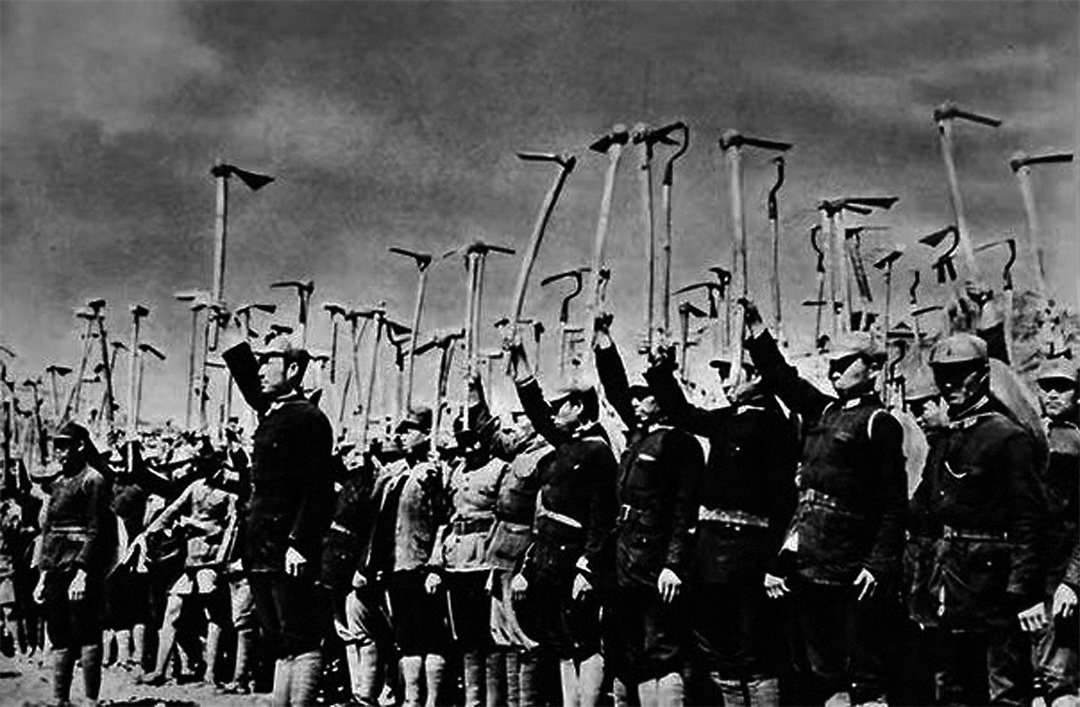 八路军359旅某部官兵在南泥湾进行生产动员。