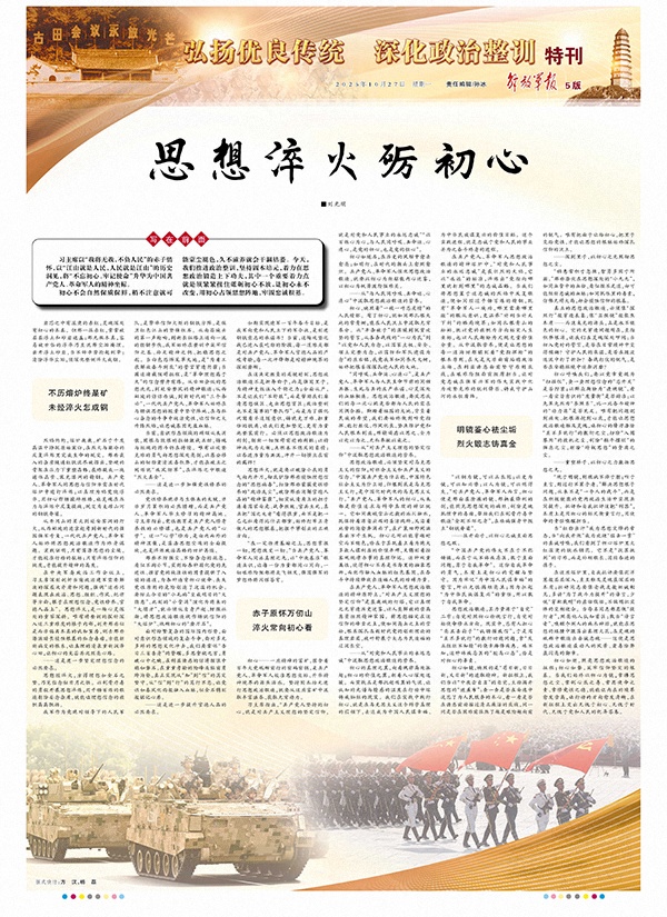 从井冈山的星火到延安窑洞的灯火,从西柏坡的进京赶考到新时代的强国强军号角,一代代共产党人、革命军人始终将思想政治锻造作为终身课题。实践证明,只有荡涤思想的尘埃,才能校准行动的航标;只有淬炼信仰的纯度,才能提升精神的高度。