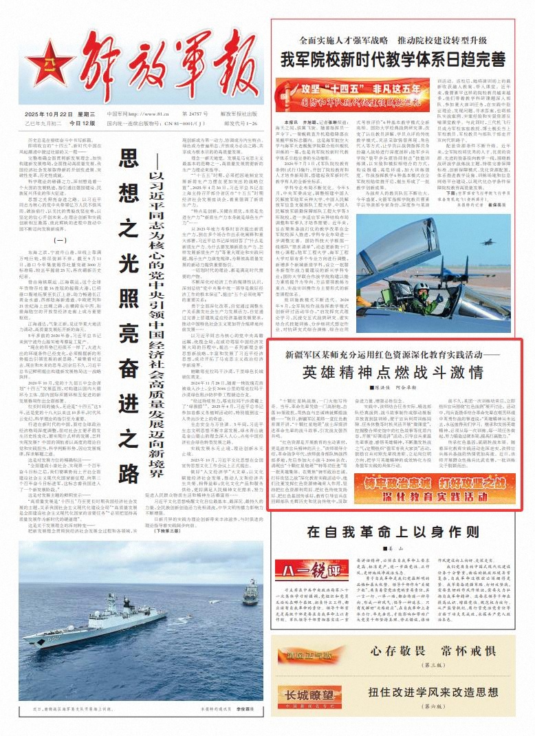 “红色资源是开展教育的生动素材,更是滋养官兵精神的沃土。”该师领导介绍,革命战争年代,该师前身部队转战西部多地,先后参加大小战斗2000余次,涌现出“十颗红星炮班”“特等功臣连”等一批英雄集体。在聚焦“铸牢政治忠诚、打好攻坚之战”深化教育实践活动中,他们注重发挥红色资源铸魂育人作用,坚持把红色资源利用好、把红色传统发扬好、把红色基因传承好,教育引导官兵在回顾部队光辉历史和优良传统中,汲取奋进力量、增强必胜信念。