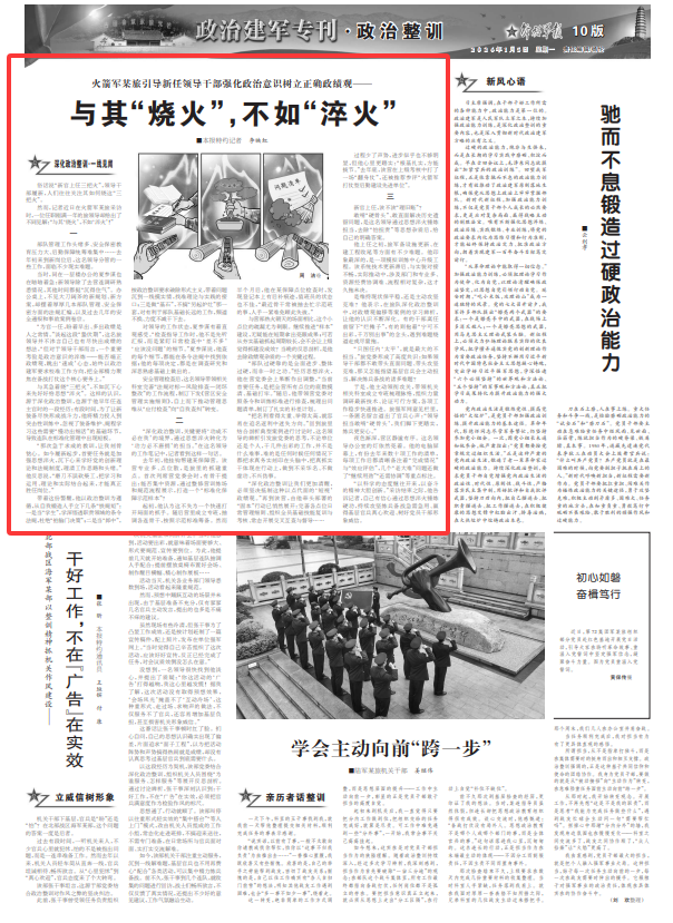 然而,记者近日在火箭军某旅采访时,一位任职刚满一年的旅领导却给出了不同见解:“与其‘烧火’,不如‘淬火’!”