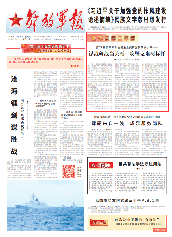 谋战研战当头雁,攻坚克难树标杆。记者在采访中了解到,一名负责牵头研究某重难点课题的集团军党委常委,常年在演训一线现场办公。从指挥方舱到战车驾驶舱,从舟艇甲板到战机座舱,他在集团军任职近3年,足迹遍布部队各驻训点位。一名集团军部门领导为攻克复杂环境下多款新型装备运用难题,带领由机关处室骨干组成的专项攻关组,长期蹲在驻训一线和官兵一起攻坚,记录分析上千组数据,探索形成多套战法训法,大幅提升装备作战效能。而他到集团军工作数年间,仅在营区公寓房累计居住不到半年……记者的采访本上,这样的事例还记了不少。