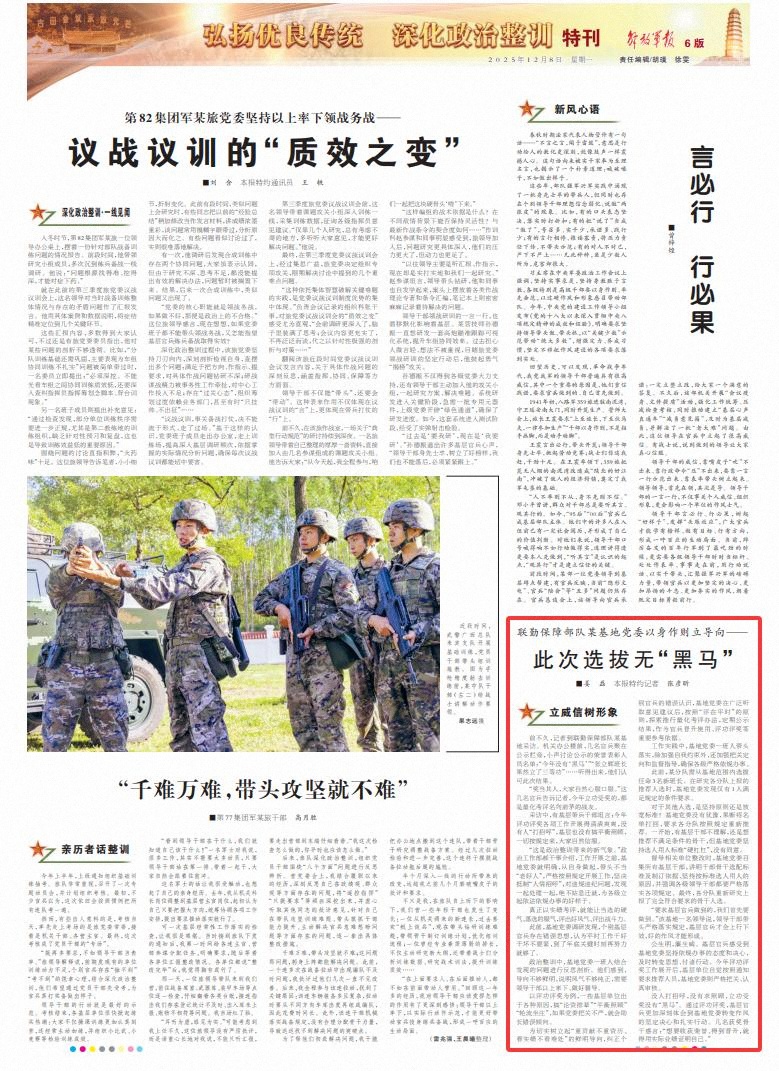 “这是政治整训带来的新气象。”政治工作部郝干事介绍,工作开展之前,基地党委就明确,从自身做起,带头不当“老好人”,严格按照规定开展工作,坚决抵制“人情招呼”,对违规违纪问题,发现一起处理一起,绝不姑息迁就,为各级立起依法依规办事的好样子。