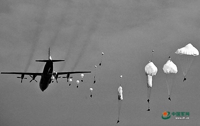 某部官兵进行伞降训练。 刘东祥 摄