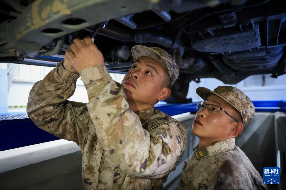 2月17日,无锡联勤保障中心某部官兵在保养维护车辆。