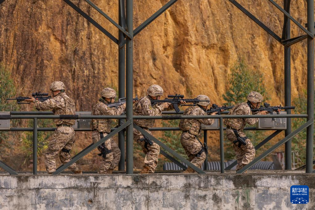 2月16日,武警广西总队来宾支队组织官兵进行小组战术搜索训练。