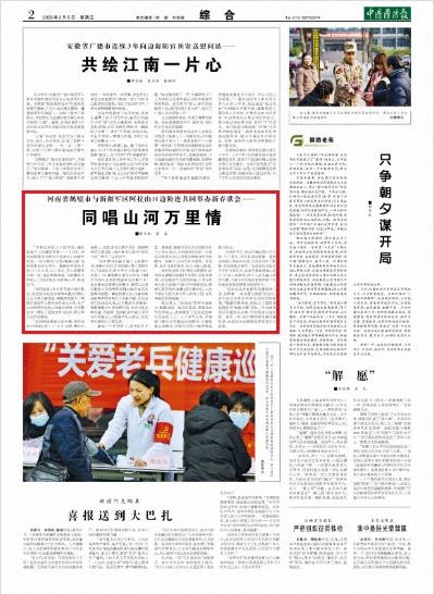 “风掠过阿拉山口的哨岗,钢枪挺起守卫边疆的脊梁……”2月初,河南省鹤壁市双拥文化活动中心内歌声悠扬,一场主题为“守望·城连共建”的新春歌会在此举行。鹤壁市军地相关部门工作人员、中小学生、军人家属等齐聚一堂,通过视频连线,与新疆军区阿拉山口边防连官兵同唱心声,喜迎佳节。