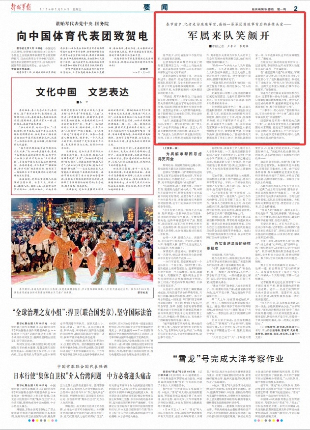 回望新春走军营一路所见的点滴“小事”,记者不仅感受到军人对阖家团圆的朴素期盼,更见证了各级组织解除官兵后顾之忧、凝聚军心士气的务实之举。官兵在享受幸福团聚的同时,也焕发出练兵备战的强大动力。