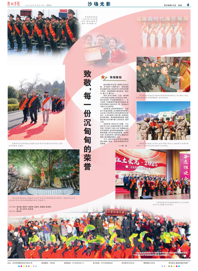 披红戴花受表彰,敲锣打鼓送喜报。春节前夕,军地举办了一场场充满仪式感的活动,彰显对军人荣誉的礼赞与尊崇。这份特殊的“新春贺礼”,暖兵心,聚士气,励斗志。
