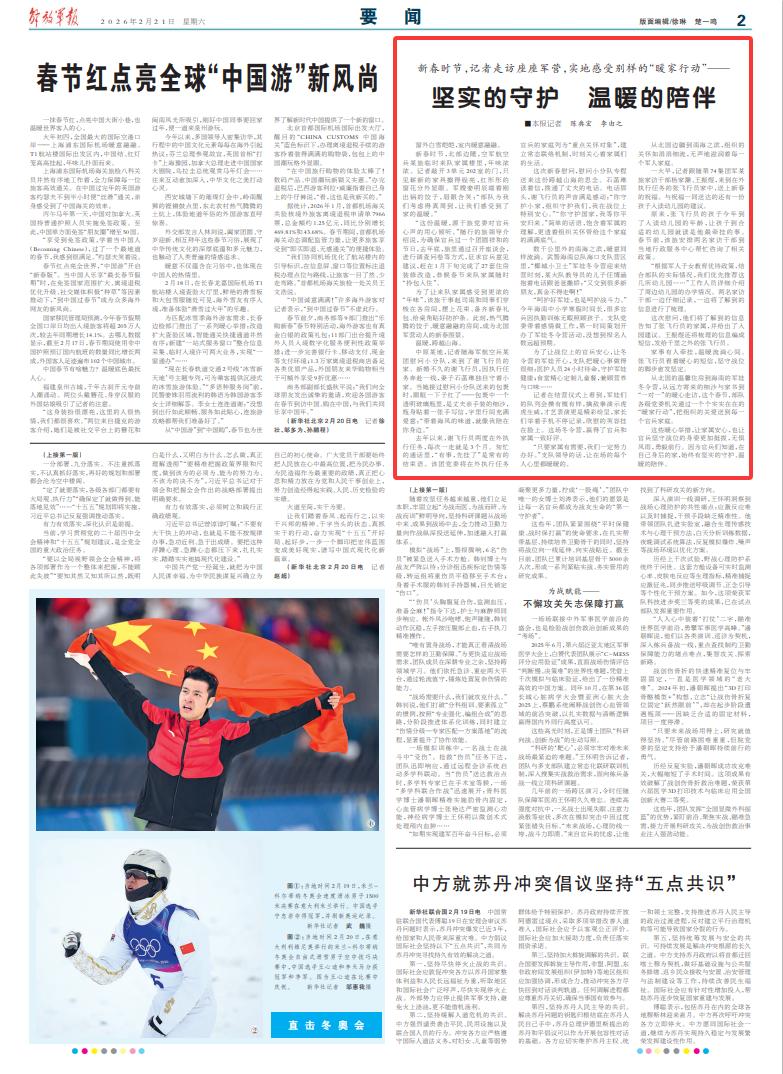 新春时节,北部边陲,空军航空兵某旅临时来队家属楼里,年味浓浓。记者敲开3单元202室的门,只见崭新的家具擦得锃亮,红彤彤的窗花分外显眼。军嫂姜明辰端着刚出锅的饺子,眉眼含笑:“部队为我们考虑得真周到,让我们感受到了家的温暖。”