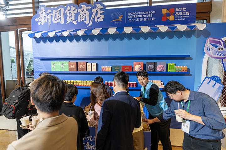 12月3日,在2025企业家博鳌论坛国民共“拾”光市集,参会嘉宾正在新国货商店体验饮品。新华网记者 钟奕摄