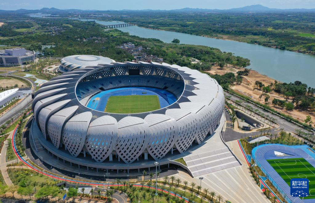 3月19日拍摄的琼海市文化体育中心(无人机照片)。
