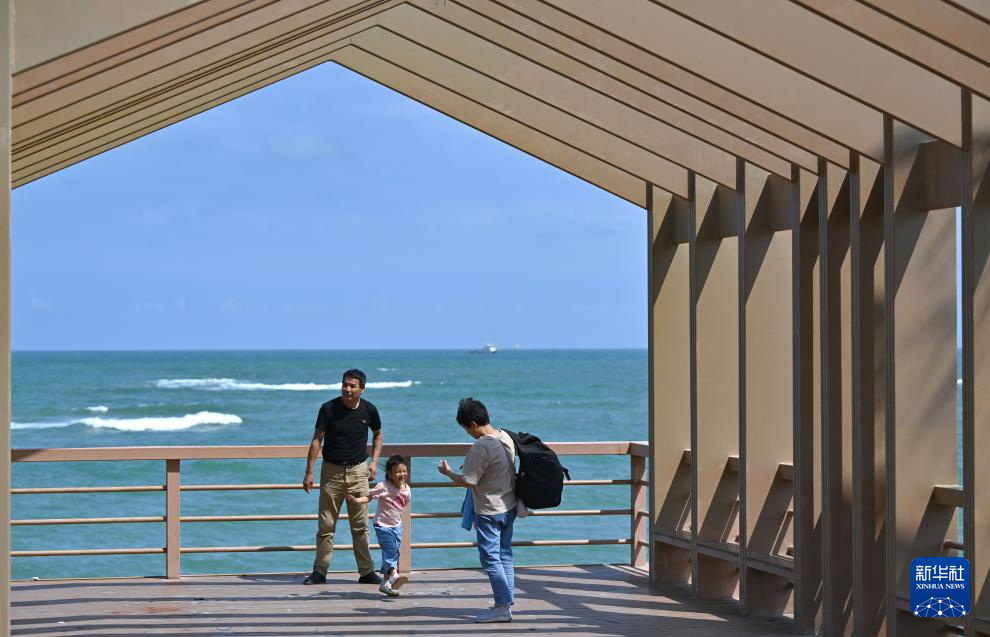 3月18日,游客在琼海市博鳌镇海边游玩。