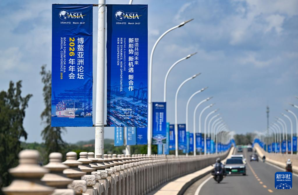 这是博鳌大乐大桥上的博鳌亚洲论坛2026年年会主题宣传牌(3月17日摄)。
