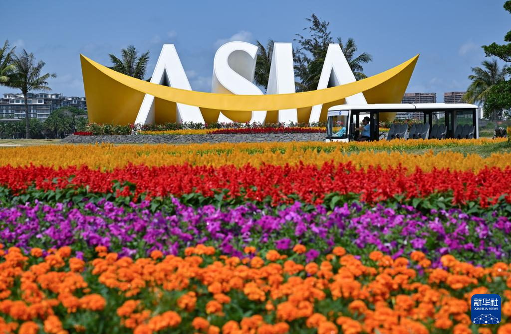 这是博鳌东屿岛上的博鳌亚洲论坛年会主题造景(3月18日摄)。