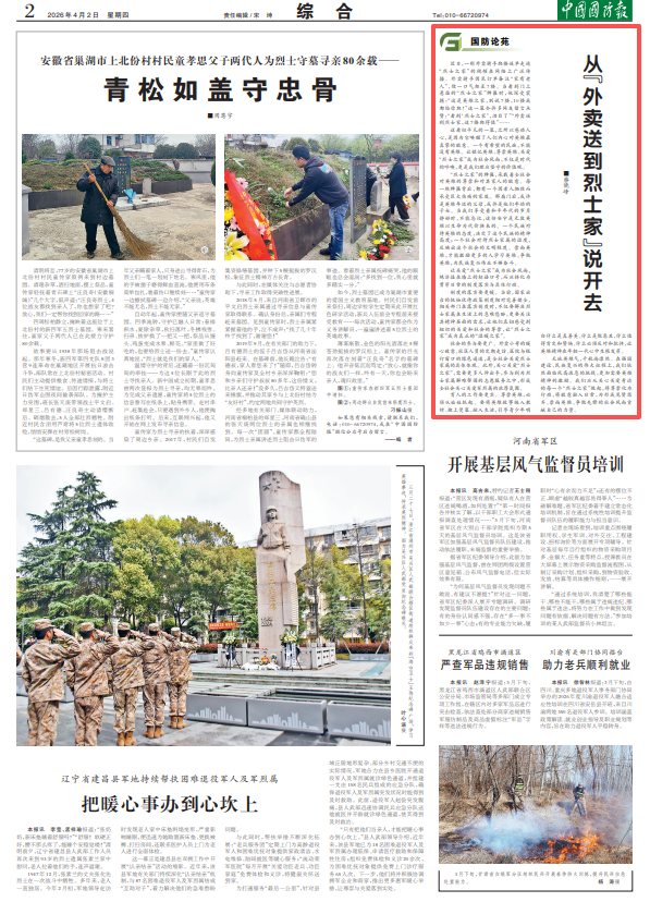 社会的参与要更广。外卖小哥的暖心致意、社区人员的定期走访、医院与银行窗口的绿色通道,是全社会关爱烈士家属的具体体现。此外,关心关爱“烈士之家”,需要更多人伸出手,参与到为烈士家属解难帮困的志愿服务之中,形成全社会关心关爱军烈属的浓厚氛围。