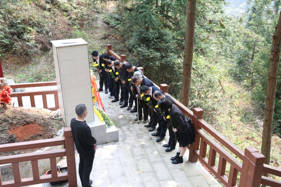默哀、鞠躬、献花……山风掠过松枝,来自江西瑞金的“寻亲代表团”,向烈士深情致敬。