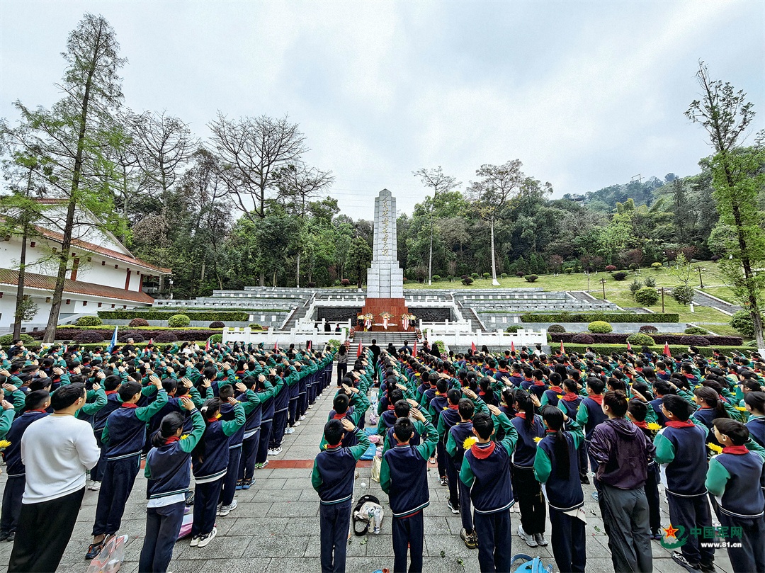 3月25日,四川省宜宾市组织学生来到市烈士陵园,开展“纪念碑下的思政课”活动。吴涛 摄
