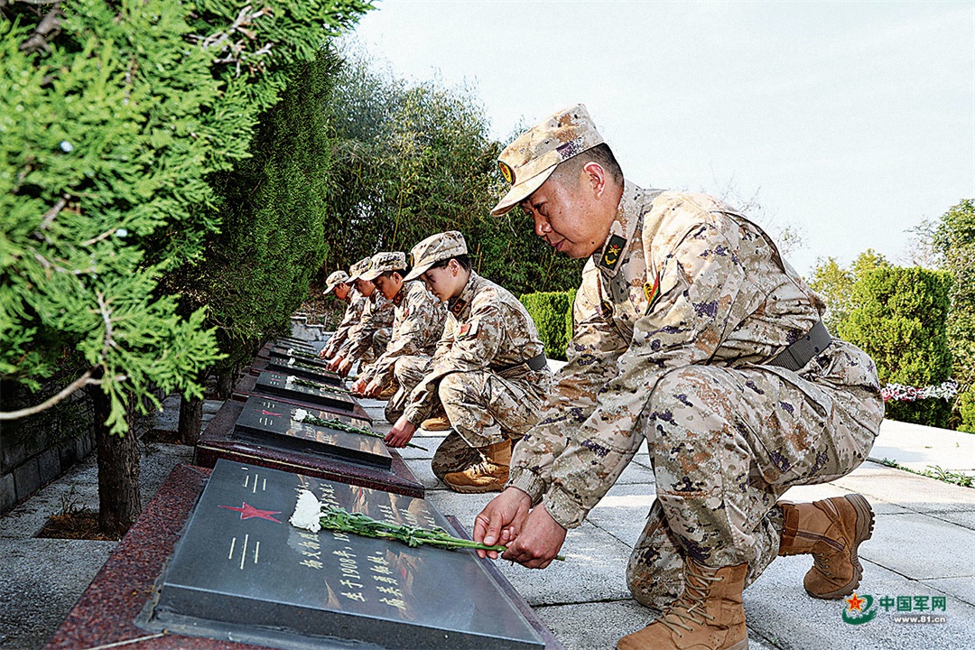 3月25日,安徽省庐江县泥河镇武装部组织民兵走进福泉山烈士陵园,为烈士敬献鲜花。陈贤志 摄