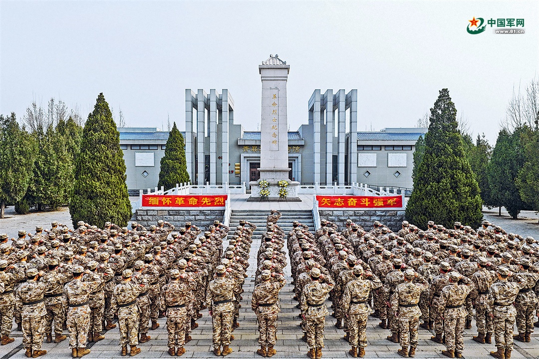 清明节前夕,河北省沧州军分区组织民兵骨干前往青县烈士陵园开展“缅怀革命先烈、矢志奋斗强军”教育活动。左越 摄