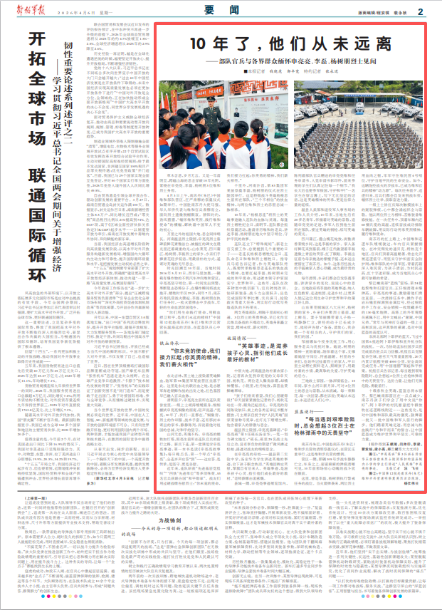 连队还立下“特殊规矩”:新老主官交接工作,总要提到几个重要的日子——老连长杨根思牺牲纪念日、连队命名日和维和烈士牺牲日。指导员马喆告诉记者,作为英雄部队传人,既要传承杨根思老连长的铁血战斗精神,也要扛起李磊、杨树朋未完成的和平使命,用过硬本领守护家国安宁、世界和平。这些年,连队在改革转型中换羽新飞,官兵转岗改训、钻研新装备,战斗力全面跃升,出色完成国际军事比赛、实兵演习、抢险救灾等重大任务,用实际行动续写英雄连队的不朽荣光。
