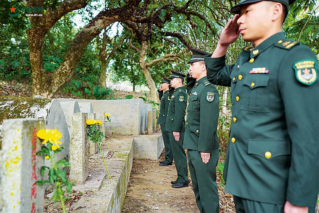 3月22日,无锡联勤保障中心某部官兵来到驻地烈士陵园,向革命先烈献花敬礼。陈程孝 摄