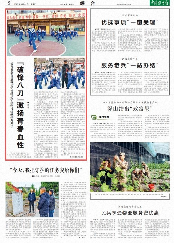 3月23日上午,云南省彝良县题铭学校课间活动时间,百余名少年的铿锵誓言响彻校园。他们手持木刀,列阵肃立。在教练员口令指引下,整齐演练源自长城抗战烽火的经典刀法——“破锋八刀”。