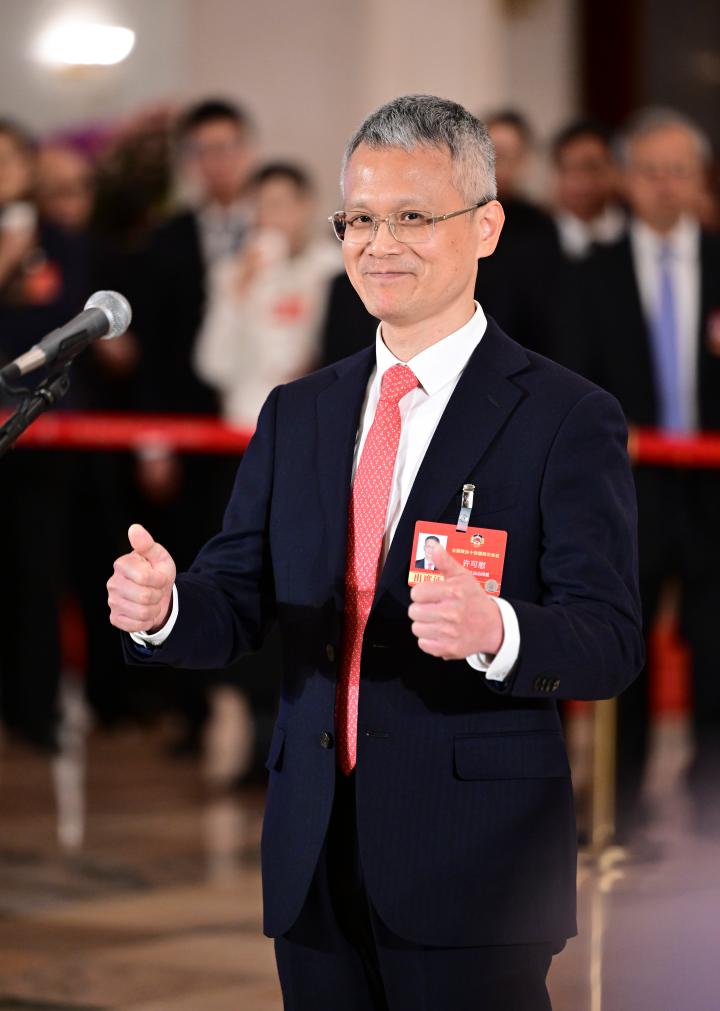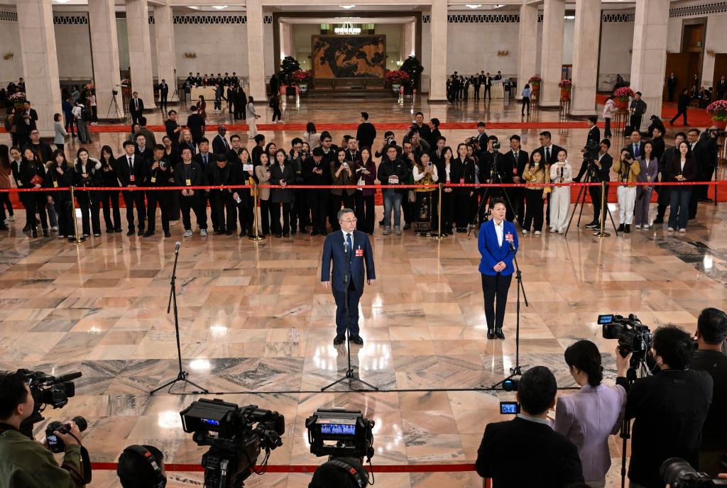 3月11日,全国政协十四届四次会议第三场“委员通道”集体采访活动在北京人民大会堂举行。