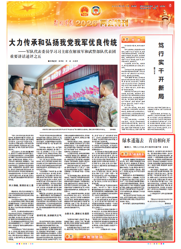 向“绿”而行,是经济社会可持续发展的要求,也是部队官兵的自觉行动。营区短途通勤合并派车,会议材料推行无纸化,装备维护精准用料、减少浪费……绿色低碳理念已融入部队管理日常。野外驻训,车辆开进路线精心设计,自觉避让生态敏感区;垃圾分类处理,水源地周边无油污或废弃物残留……驻训不留痕,既是纪律,也是军人的“绿色”担当。
