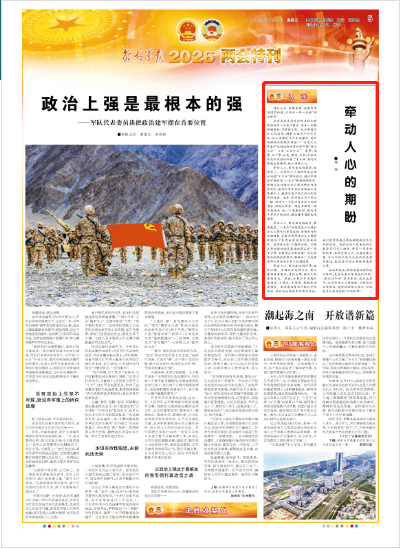 全国两会是国家治理目标和政策措施的一次集中展示,更是一次精神的振奋、力量的汇聚。从加紧培育壮大新动能,到扩大高水平对外开放;从扎实推进乡村全面振兴,到加快推动全面绿色转型……全国人大代表和全国政协委员始终牢记“国之大者”,心系“万家灯火”。家事、国事、天下事,历史、现实、未来,在春风中交织成别样画卷。“十五五”开局之年的全国两会,格外牵动人心。