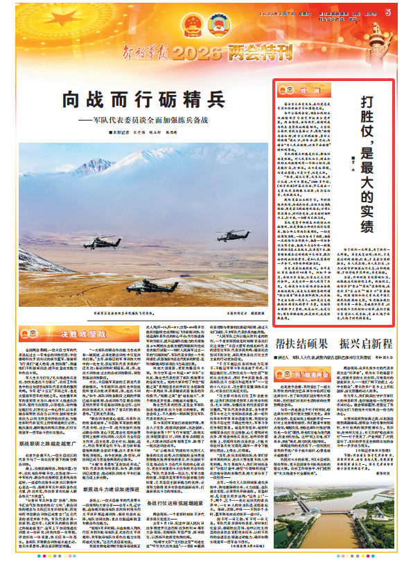 当前,外部环境变化影响加深,地缘政治风险持续上升。新征程上,还有许多“雪山”“草地”需要跨越,还有许多“娄山关”“腊子口”需要征服。巩固国防和强大军队是中国式现代化的战略支撑。唯有把备战打仗作为第一要务,忠诚履职尽责,以过硬战斗力践行初心使命,我们才能不负党和人民重托,交出无愧于历史、无愧于时代的答卷。