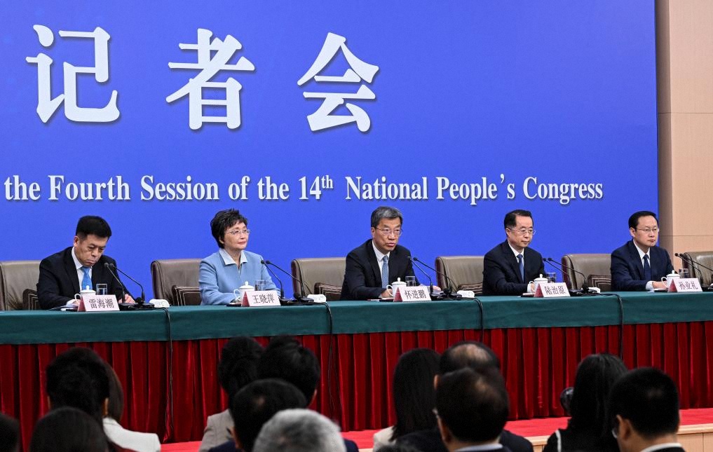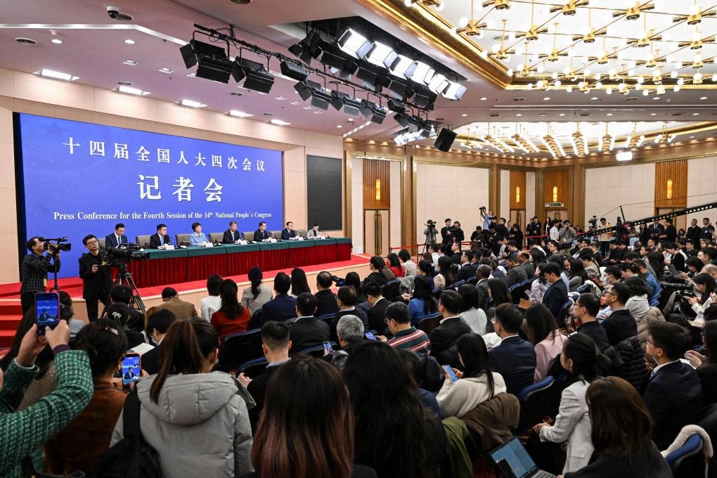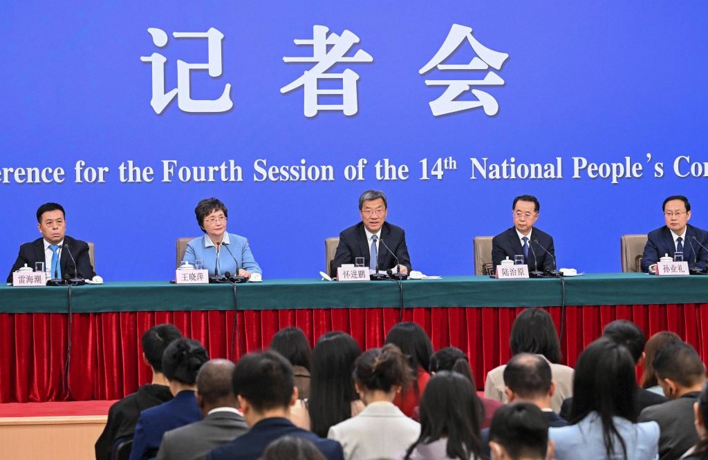 3月7日,十四届全国人大四次会议在北京梅地亚中心新闻发布厅举行记者会。教育部部长怀进鹏、民政部部长陆治原、人力资源和社会保障部部长王晓萍、文化和旅游部部长孙业礼、国家卫生健康委员会主任雷海潮就教育、民政、人力资源和社会保障、文旅、卫生健康等相关问题回答中外记者提问。