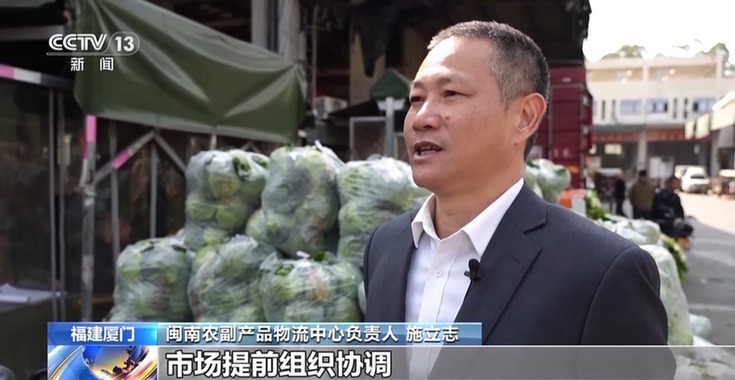 闽南农副产品物流中心负责人施立志:市场提前组织协调本地和外地的商户,确保市场的供应量。市场商户也根据节日消费特点,多样采购货品,以确保蔬菜供应的丰富多样。