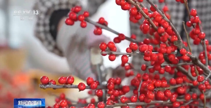 距离春节不到两周的时间,年宵花进入销售最集中的时段。在江苏新沂的北美冬青种植基地里,农户正忙着起苗、装车,一株株“中国红”发往各地。