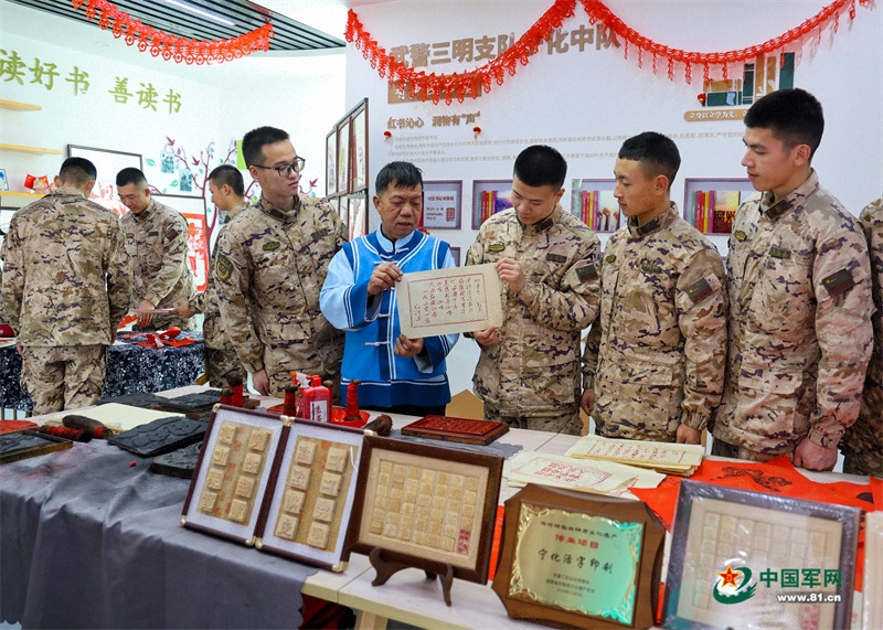 三明宁化,作为中央苏区核心区域和红军长征最远出发地,承载了深厚的人文底蕴和历史印记。官兵们收到了多种多样的“文化年货”,其中非遗文化体验区最受官兵欢迎。