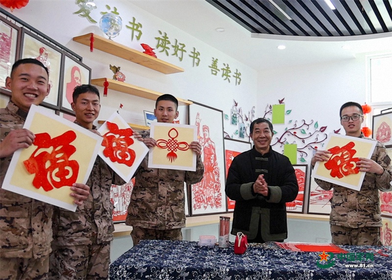 官兵展示剪纸作品。钟炜俊 摄