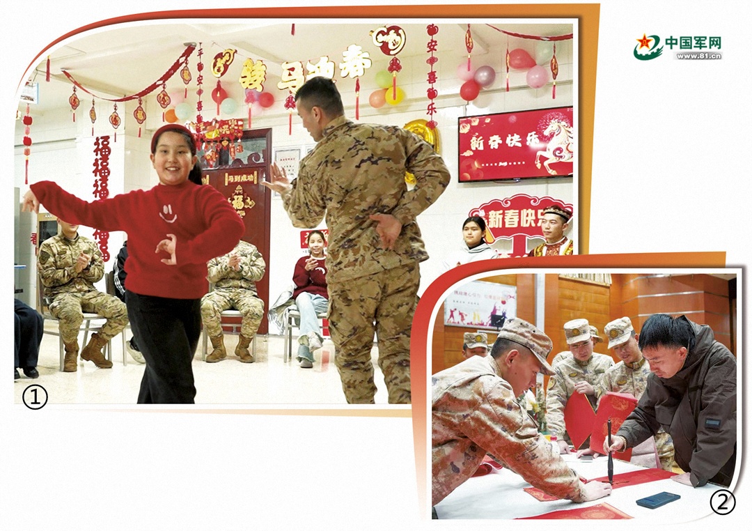图①:春节前夕,武警新疆总队某支队某中队邀请驻地学生和帮扶对象来队参加联欢活动。向青青 摄