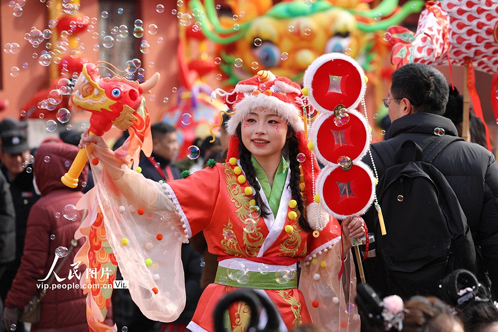 2026年2月10日,安徽合肥第三十二届新春文化庙会在城隍庙欢乐开启。民俗踩街、鱼灯巡游等精彩上演,现场人潮涌动,热闹非凡。解光文摄(人民图片网)