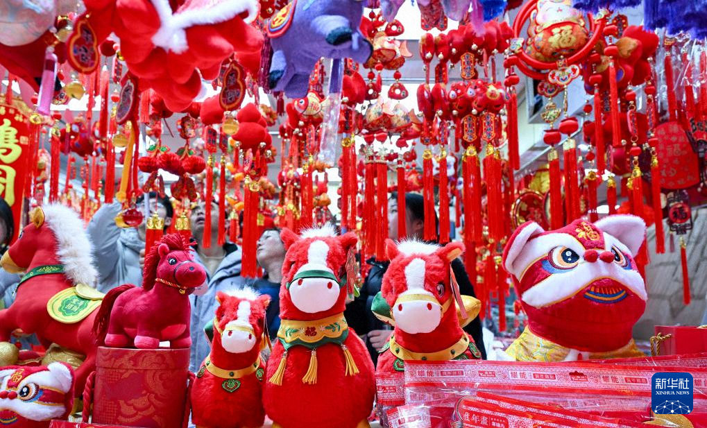 2月13日,市民在江苏南京一家小商品市场选购新春饰品。新华社发(杨素平摄)