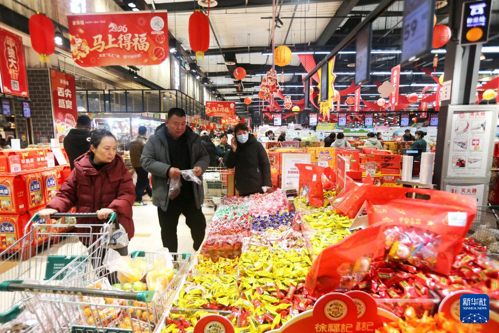 2月11日,人们在河南省开封市一商场“年货大街”选购年货。新华社发(李俊生摄)