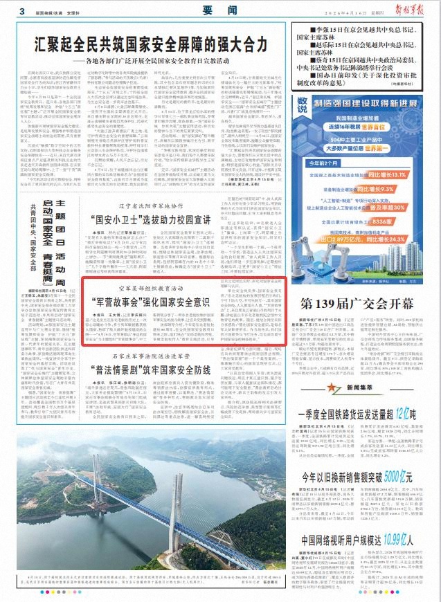解放军报讯 王文博、记者李庆桐报道:“这是发生在东北老航校历史上一次惊心动魄的斗争,多亏我军敏锐截获敌人情报,粉碎了敌人破坏航校建设的企图……”4月15日,空军某部以“身边的国家安全”为主题组织“军营故事会”,中士柴则瓴分享了一则东北老航校维护国家军事安全的战斗故事,让官兵受到警醒。